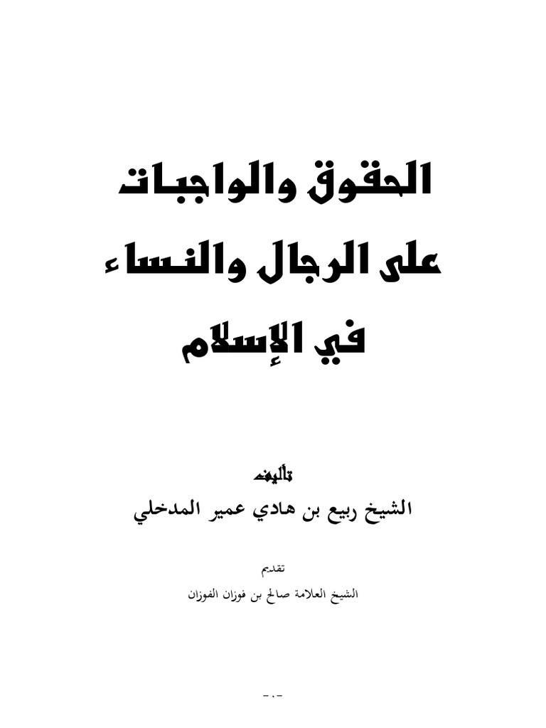 الحقوق والواجبات على الرجال والنساء في الإسلام الشيخ ربيع بن هادي عمير المدخلي دار المنهاج Naciha Shop