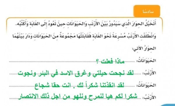 اتخيل الحوار الذي سيدور بين الارنب والحيوانات سؤال وجواب